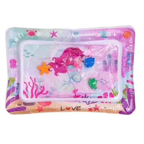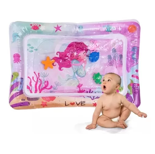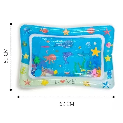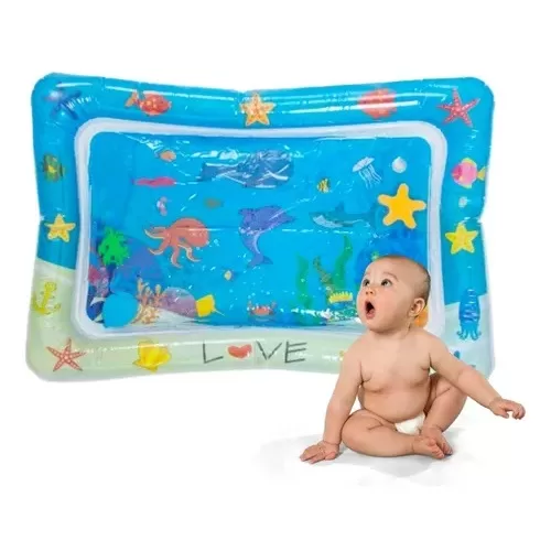 Con bordes inflables y el centro lleno de agua, esta alfombra crea un entorno acuático seguro y divertido. Además, incluye figuras móviles en el interior que el bebé puede desplazar, fomentando su coordinación y habilidades motoras.