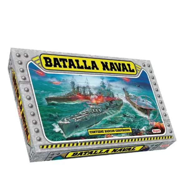El juego consiste en que cada jugador realice un disparo por turno. En caso de dar en el blanco se sigue disparando hasta fallar. Para realizar un disparo el jugador debe optar por una combinación de una letra y un número en el tablero. Jugadores: 2. Contenido: 2 Tableros de juego + 20 Buques en dos colores + instrucciones. Edad recomendada: +7 años.