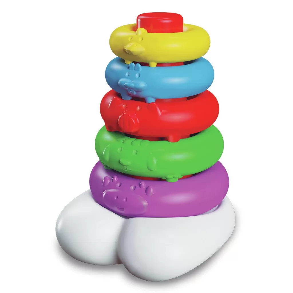 El eje central permite insertar y ordenar los anillos por su tamaño estimulando la destreza manual.