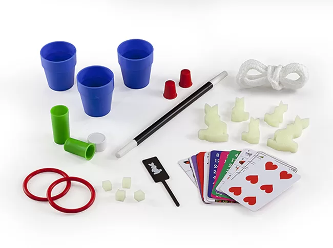 Con elementos como una soga, una jumping bar, una caja faquir y dos paletas conejo, el pequeño mago tendrá todo lo necesario para desarrollar su repertorio de magia. Las instrucciones en español permiten que los niños puedan seguir los pasos de manera sencilla y deslumbrar a familiares y amigos con sus trucos. Ideal para jugar solo, este juego también fomenta la autoestima y la confianza en uno mismo al realizar presentaciones mágicas.