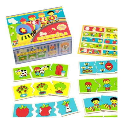 CONTIENE: 10 ROMPECABEZAS DE 3 PIEZAS DE MADERA PINTADA – 1 LAMINA GUIA MEDIDAS DE LAS FICHAS: 6 cm. x 18 cm. x 0,3 cm. PARA 2 O MAS JUGADORES