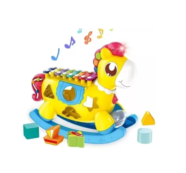 Caballo musical multifuncion. Incluye: figuras para encastrar. botones musicales, xilofon, luz y sonido, crono