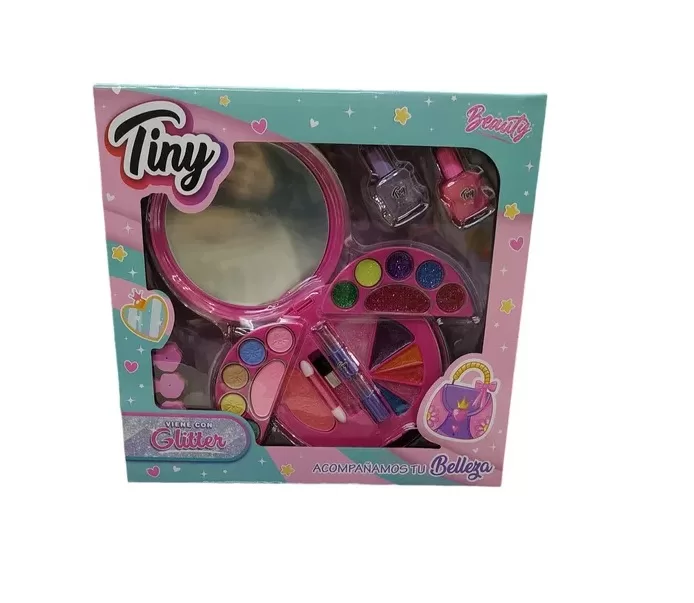 FORMA CIRCULAR CONTIENE SOMBRAS DE OJOS, SOMBRAS DE OJOS CONGLITTER LAPIZ LABIAL, ESMALTE DE UÑAS, PINCEL APLICADOR, SEPARADOR DE DEDOS