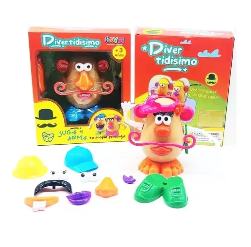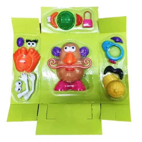 Set par armar tu propio personaje. Juga, arma y desarma. Desarrolla tu personaje de diferentes maneras. Incluye accesorios para señor y señora cara de papa. Edad 3+