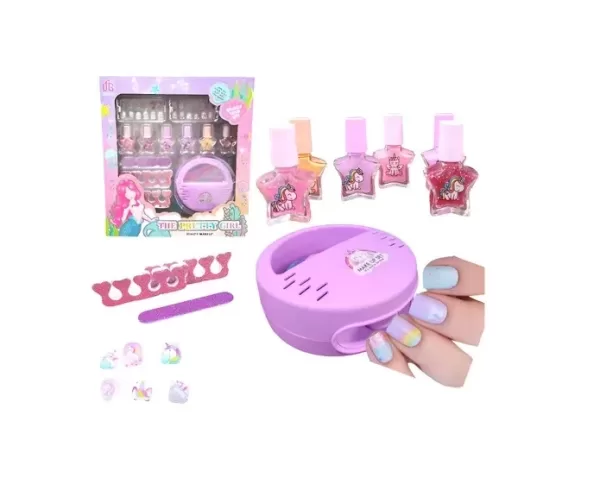El kit incluye 12 elementos variados que permiten crear diseños únicos y personalizados en las uñas. Además, cuenta con un secador que ayuda a que los pequeños artistas terminen sus creaciones rápidamente y de manera eficiente. Todos los productos son hipoalergénicos y lavables, lo que garantiza la seguridad y comodidad de su uso.